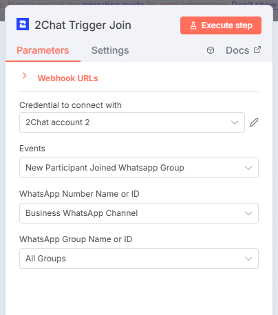 - Events: Ensure "New Participant Joined WhatsApp Group" is selected.
