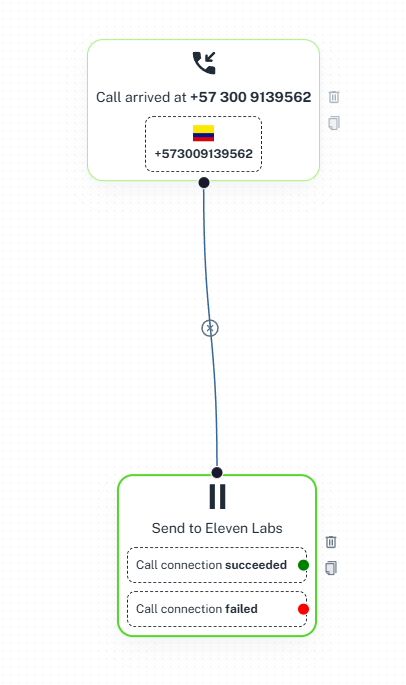 - Add a trigger for an incoming call, and then add an Integration component: select Send to ElevenLabs.